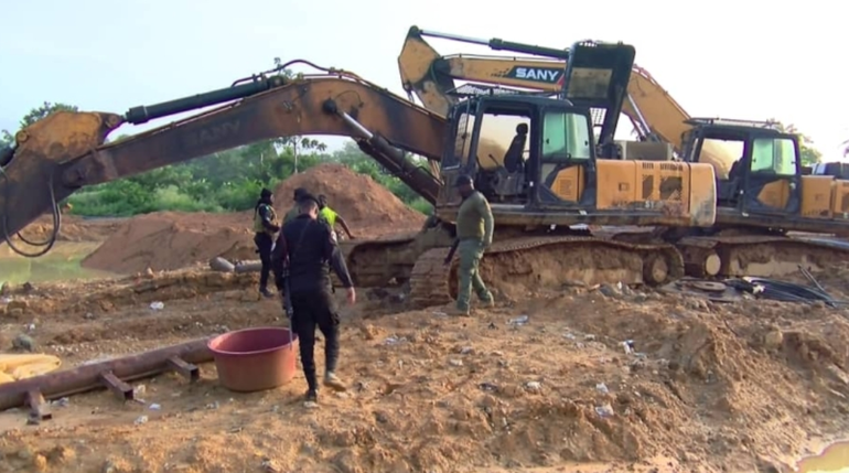 Two of the seized excavators were reportedly being escorted by armed men believed to be military personnel.