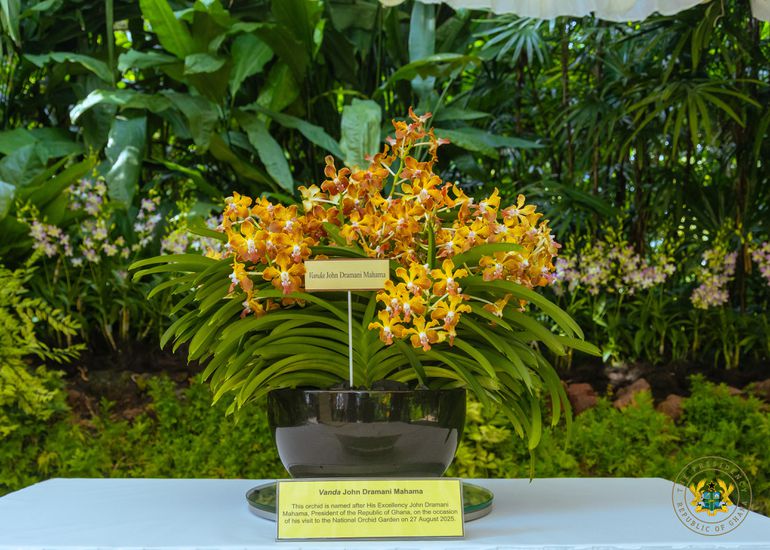 The ceremony took place during President Mahama’s visit to the Singapore Botanic Gardens, where the orchid, officially named Vanda John Dramani Mahama, was unveiled. The newly named orchid now forms part of the prestigious “VIP Orchids” collection.