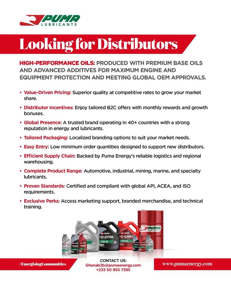 Interested distributors are encouraged to connect with Puma Energy to explore opportunities and join a network that fuels progress across industries. Contact them at Ghanab2b@pumaenergy.com or call +233 50 955 7398
