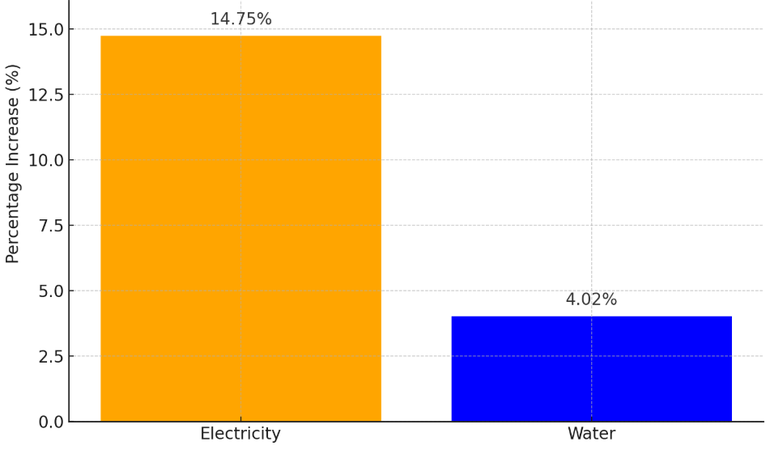 This marks the second adjustment within a year, following July 2023’s increases of 4.22% for electricity and 1.18% for water.