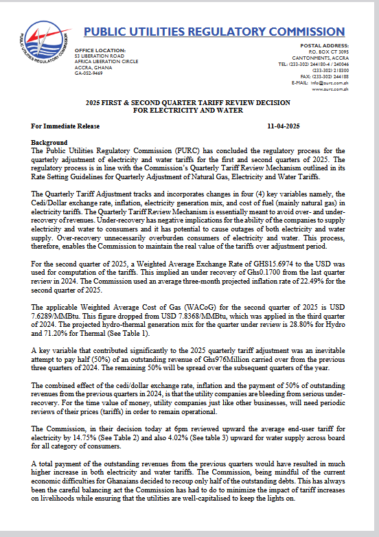 The PURC defended the move, citing significant revenue shortfalls that have led to severe financial strain on utility companies. Without these adjustments, the Commission warned, service providers risk operational collapse.