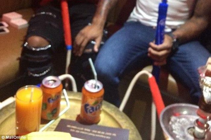 In the photos, the two forwards are seen sitting together and are both holding shisha pipes.