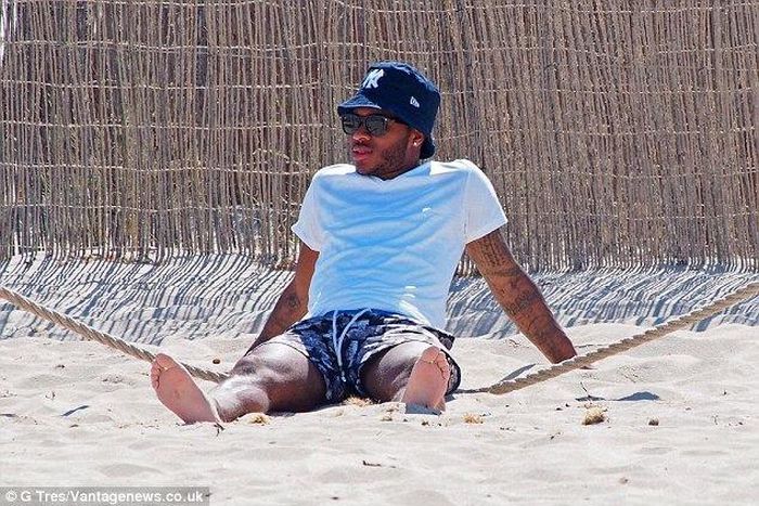 Sterling however is letting his hairs down at the island in eastern Spain relaxing after a gruelling season with Liverpool and England.