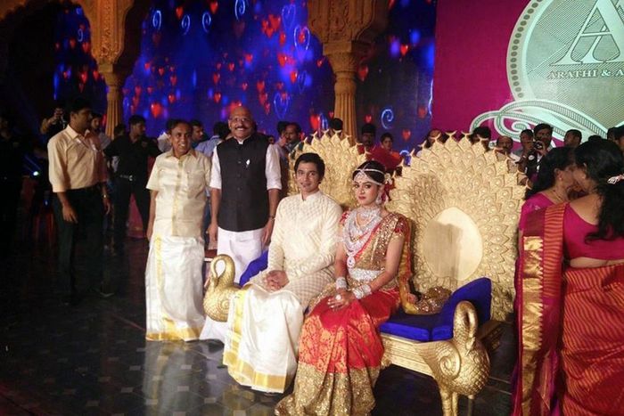 Arathi and Aditya's wedding reception was designed by one of India's popular film directors, Sabu Cyril,which took approximately 75 days and 8 acres to build