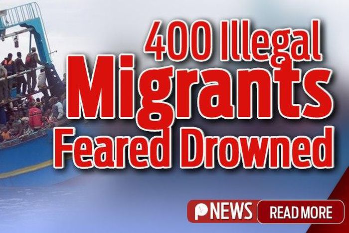 Some 400 illegal migrants may have drowned when their boat capsized off the coast of Libya on Sunday.