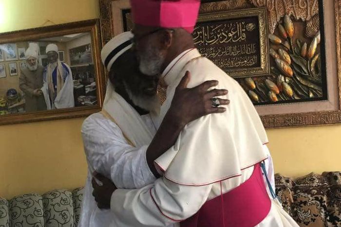 The National Chief Imam Sheikh Usman Nuhu Sharubutu and Archbishop Palmer Buckle have been pictured in a warm hug.