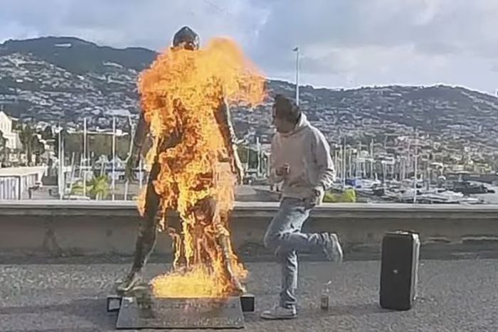 The suspect, described as a young man, filmed himself pouring a flammable liquid over the bronze statue of the former Manchester United and Real Madrid star before igniting it with a lighter outside the CR7 Museum in Funchal on Tuesday morning.