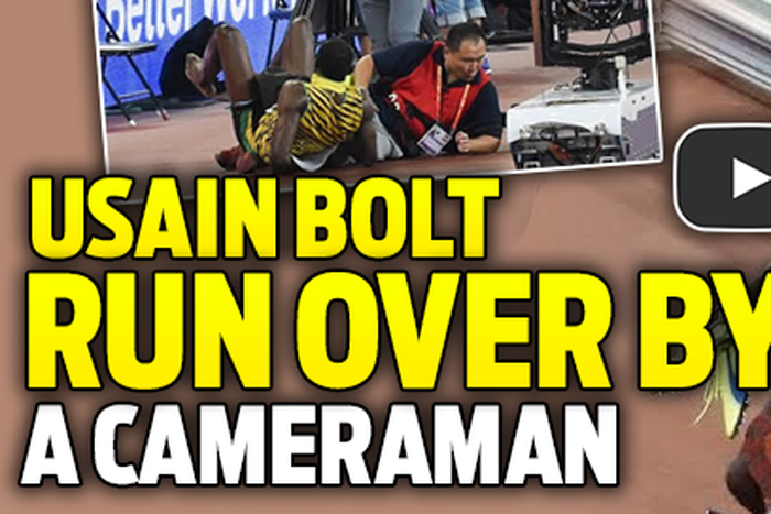 After beating American Gatlin in the 100m on Sunday, Usain Bolt was run over by a cameraman riding a Segway.