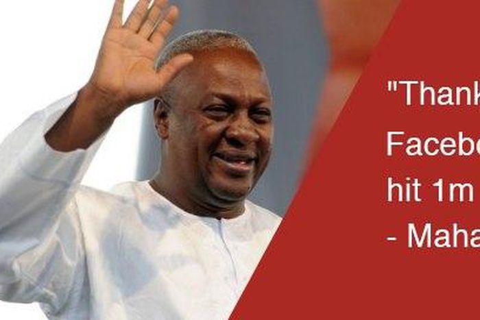President John Mahama has thanked his fans after recording one million followers on Facebook.
