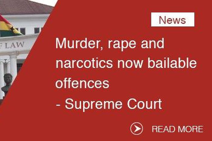 The Supreme Court has ruled that crimes such as rape, murder and narcotics are no longer non-bailable offences in Ghana.