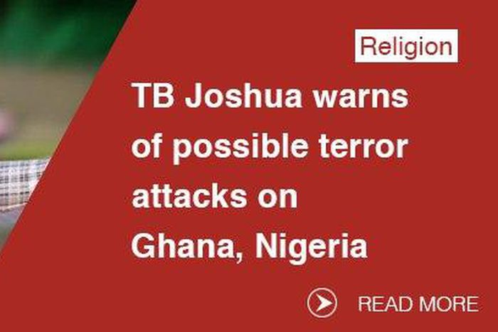 Pastor TB Joshua's prophecy comes days after Ghana's national security issued an alert of an imminent terror attack on the country.