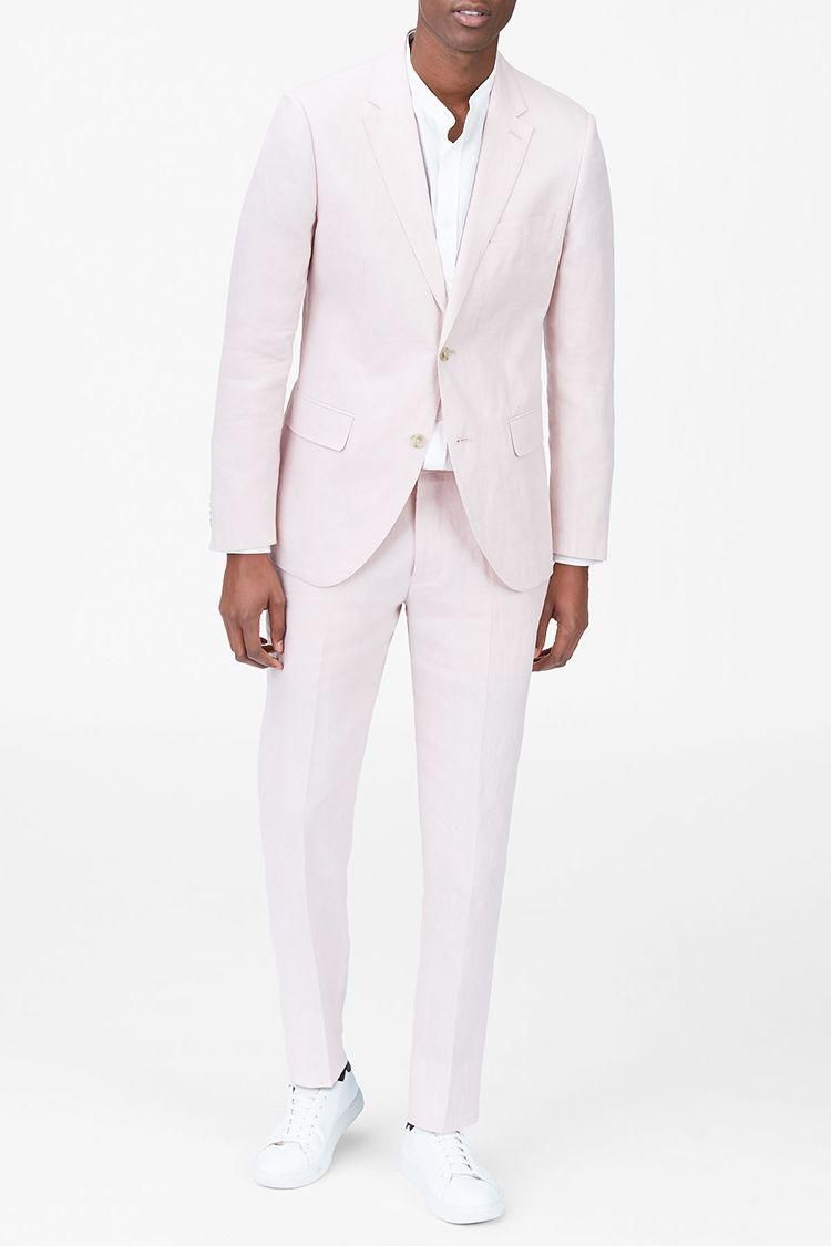 Club Monaco Men's Grant Linen Suit Blazer, $398.00 BUY IT HERE PantS, $198.00 BUY IT HERE Be the best-dressed guest at those upcoming summer weddings in this light pink linen suit with either an unbuttoned-shirt underneath or with a traditional tie situation. Club Monaco