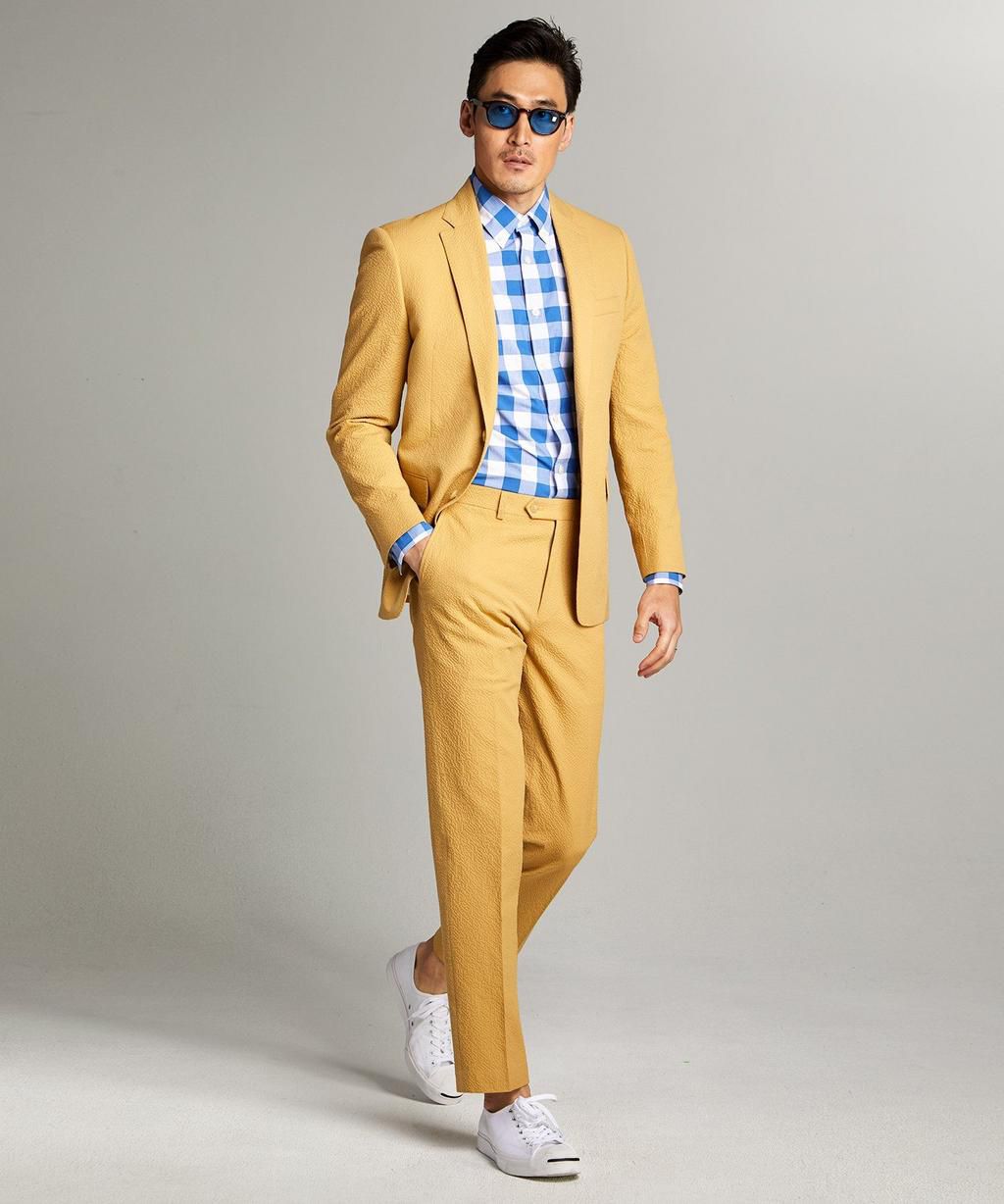Todd Snyder Sutton Seersucker Suit $676.00 BUY IT HERE Seersucker is always a go-to for lightweight, practical summer suiting that's quick drying and hides wrinkles. In this not-so-mellow yellow, your swanky summer look will be golden. Todd Snyder