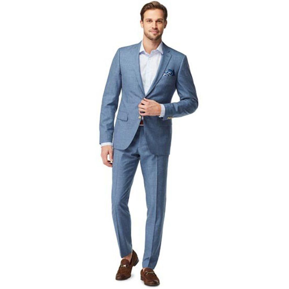 Topman Skinny-Fit Suit Jacket, $92.00 BUY IT HERE Pants, $35.00 BUY IT HERE The crisp blue color and tailored fit makes this suit the pinnacle of polished summer style. Topman