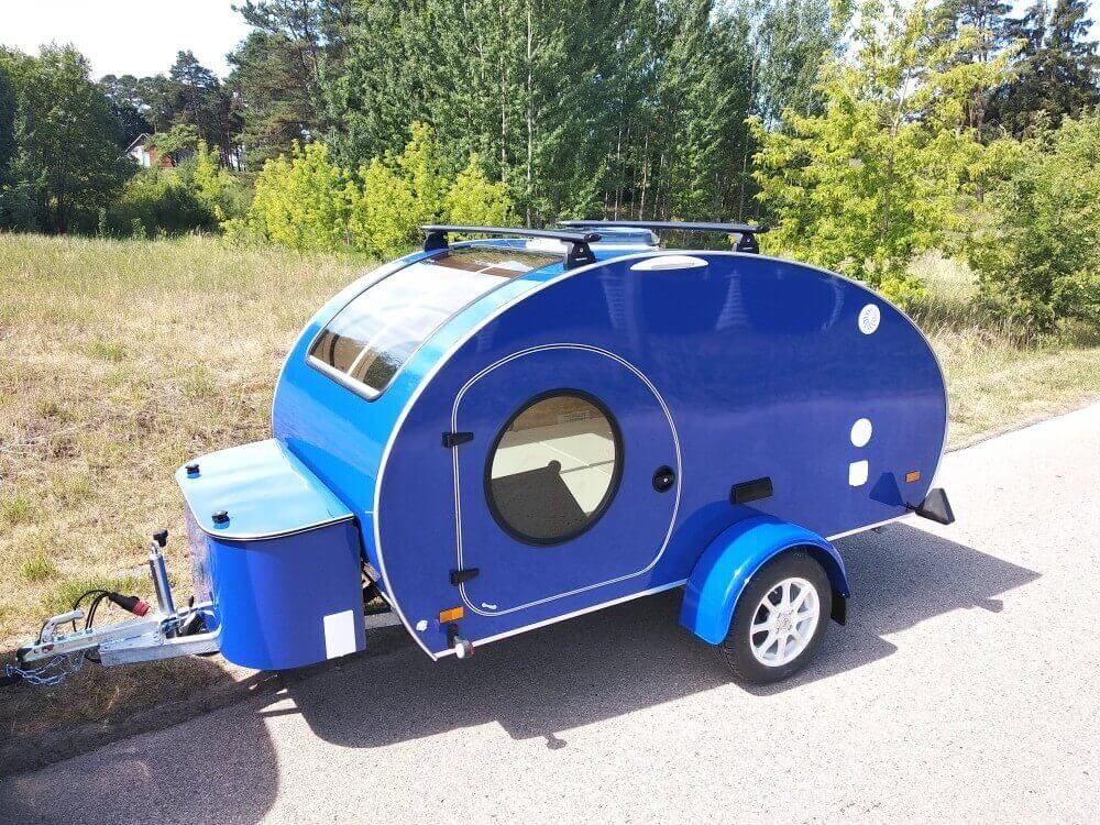Tiny Camper Mini Standard 10,320 euros (approximately $11,435.00) BUY IT HERE Theres a lot to love about this mini teardrop. For starters, its rear galley has an actual sink, mini-fridge and stove top. Aesthetically, its available in a ton of really cool paint jobs, from eye-catching mint to aquatic blue, or even unique prints depicting outdoor vistas. The sleeping area features a skylight for viewing the night stars when youre camping out, because isnt that the whole point of getting away? TK