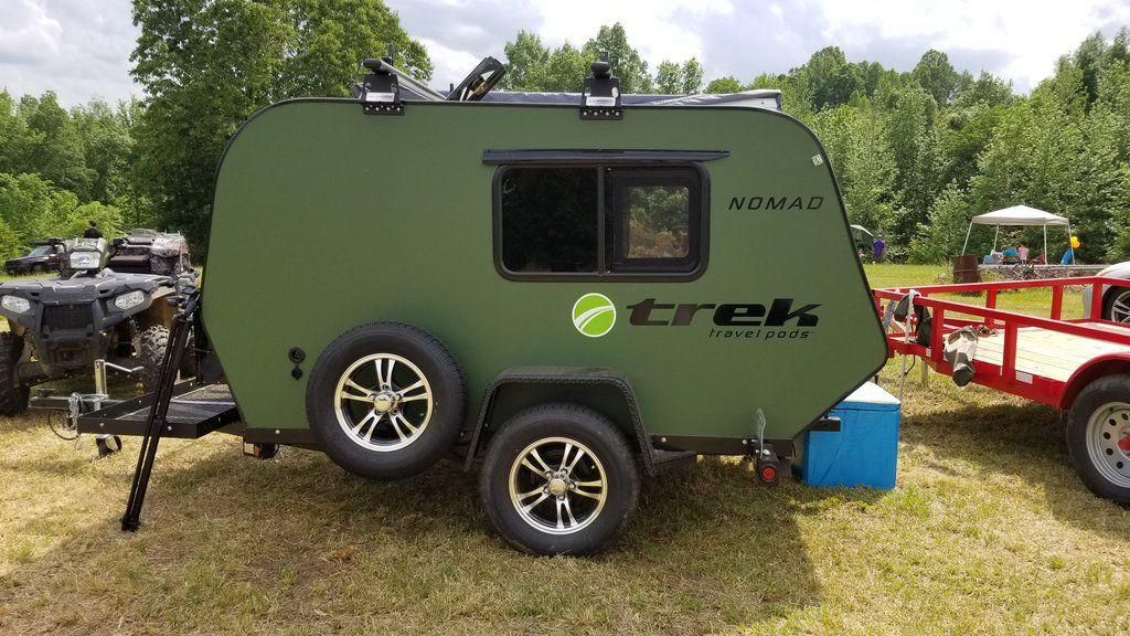 Trek Travel Pods Nomad XT Trailer $12,195.00 BUY IT HERE Trek Travel Pods Nomad XT camper has a cool, rugged look and theres a lot going on for its small size. Unlike a lot of teardrop campers available, the queen-size platform bed converts into a dinette, so you can eat in peace away from mosquitos. It also comes with an outer canopy and screen doors and windows to make the most of nature, plus a portable toilet. TK