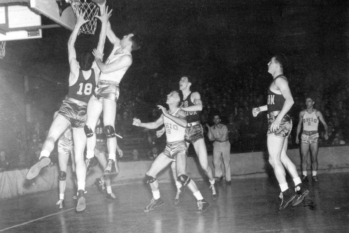 1958: Kentucky vs. Seattle University of Kentucky players attempt to foul Jerry Frizzell on Seattle University's team during the championship game in 1958. Frizzell was later inducted into the Seattle U Athletics Hall of Fame. Sporting News Archive - Getty Images