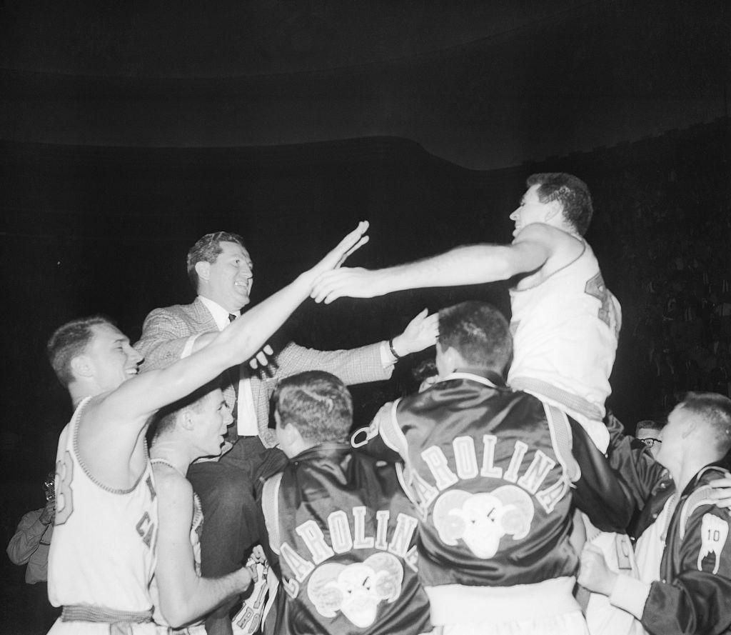 1957: Tar Heels Win The University of North Carolina Tar Heels won their first NCAA victory in 1957 under the guidance of coach Frank McGuire. The men's basketball team has since won five additional titles. Bettmann - Getty Images