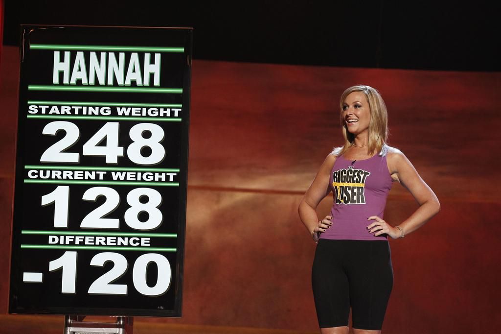 AFTER: Hannah Curlee Hannah lost 120 pounds, which was 48 percent of her body weight. She didn't win the title, though-she was edged out by her big sister. NBC - Getty Images