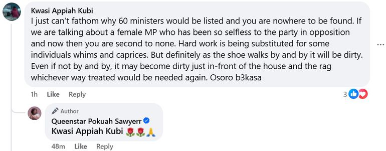 The post, which has generated a flurry of reactions in the comments section, has sparked mixed responses among National Democratic Congress (NDC) loyalists.