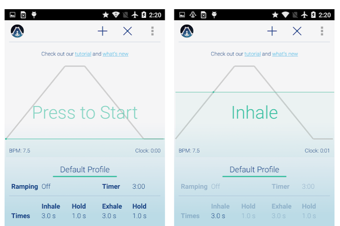 5) Breathe+ This app is similar to Paced Breathing, but for iPhone users. With this app, you can practice deep inhales and exhales to calm yourself down when youre anxious or panicked. The app is free. Courtesy