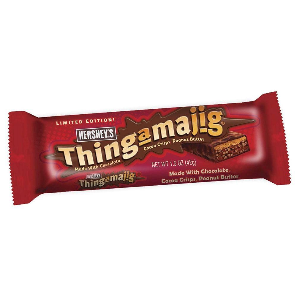2009: Hershey's Thingamijig As a limited-edition version of the Whatchamacallit, it had cocoa rice crisps and a strip of peanut butter as a layer, all covered in Hersheys decadent chocolate. Yum. Courtesy