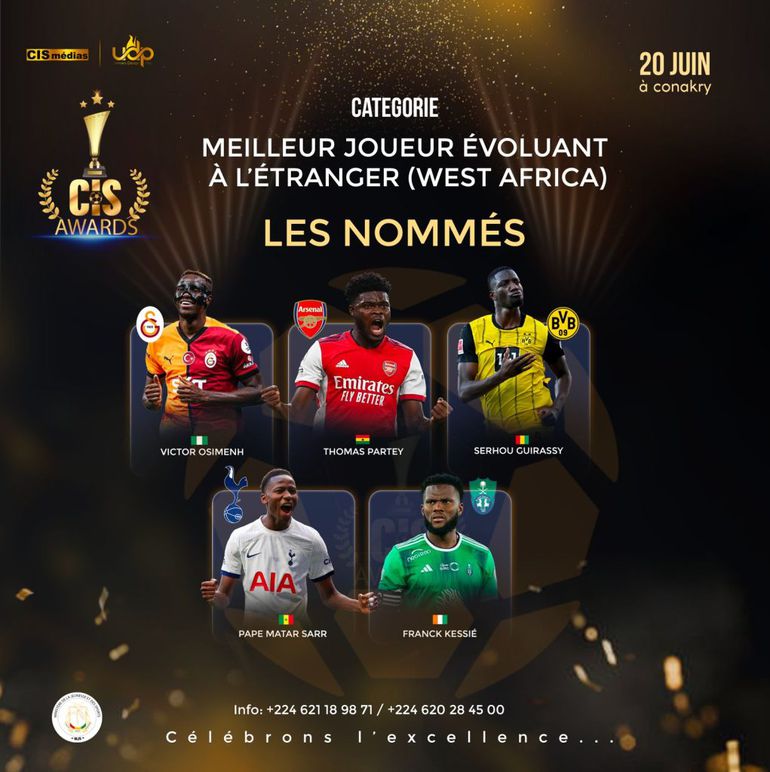 Ghanaian midfielder Thomas Partey has been shortlisted for the "Best West African Player Abroad" award at the first-ever 2025 CIS Awards, which will be held on 20th June 2025 in Conakry, Guinea.