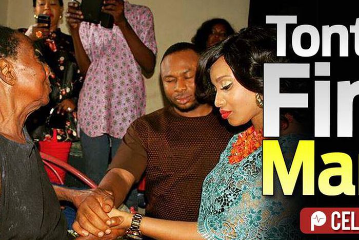 Earlier today we reported that Tonto Dikeh and Churchill got married not too long ago, and the purpose of the Introduction ceremony was to show her new husband to her family. In one of the photos, the newly weds are kneeling down Tonto Dikeh's grandmother blesses them.