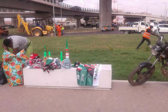 Business is flourishing with the sales of NDC paraphernalia at the Kwame Nkrumah interchange.