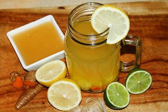 Mix in the lemon and lime juice with the sliced or grated ginger and turmeric.