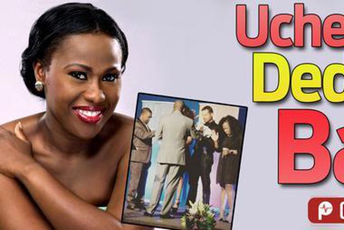 Nollywood actress, Uche Jombo and her husband were in church last weekend for their baby's dedication.