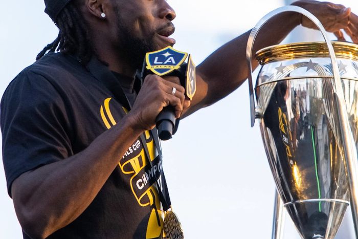 After the game, LA Galaxy went on a victory parade and it was no other than the Ghana international, who took center stage to perform his new song dubbed “Blessings.”