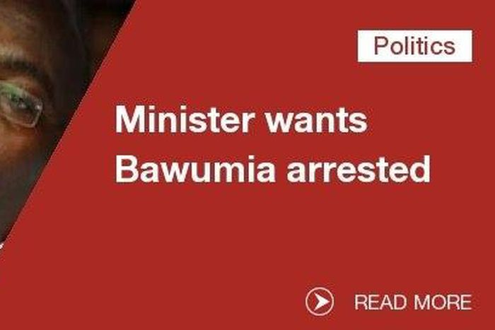 The Deputy minister of lands and natural resources, Kwabena Mintah Akandoh is calling for the immediate arrest of the running mate of the New Patriotic Party (NPP), Dr Mahamadu Bawumiah over comments he made that over 75,000 Togolese names were on Ghanas voters register.