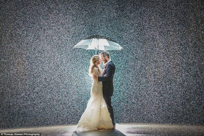 A rainy day is every bride and groom's nightmare on their wedding but this couple made the best of the bad weather situation.