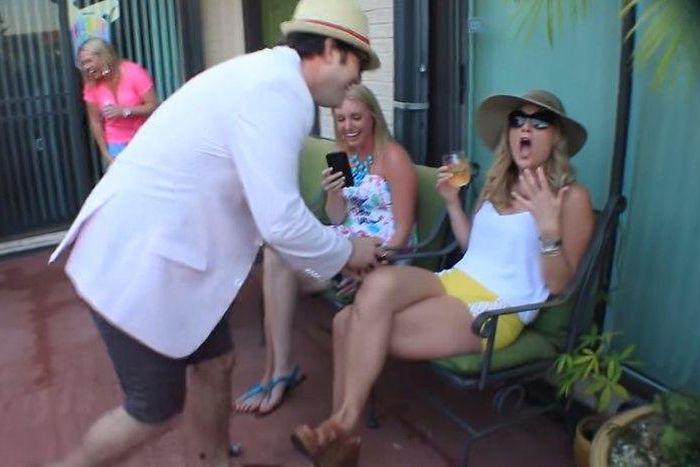 Despite his voice, Max Podell did a perfect and beautiful job of popping the question to his girlfriend by recreating a scene from "Pitch Perfect" with a group of his equally amateur (but enthusiastic!) friends.