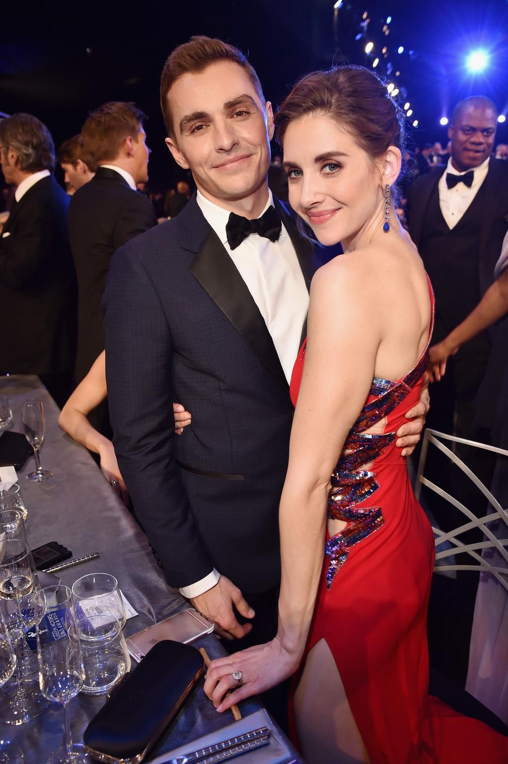 3) They are proud to be together and want everyone to know it. The first thing Orbuch notices about this Oscars moment is how confidently both Alison and Dave are standing. The giveaway that they've both got each other on the brain? The angle of their bodies. Alison is almost completely turned toward Dave, which, Orbuch says, is a demonstration of how proud she is to be photographed with him. And though Dave's body is angled to face the camera, it's tilted to his righttoward Alison. Plus, Orbuch adds, Dave's standing one step behind Alison in order to show her off, a sign pointing to how lucky he feels to be attending the award show with her. Daniele Venturelli - Getty Images