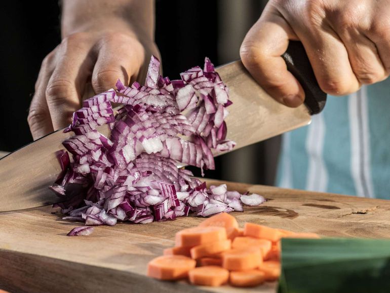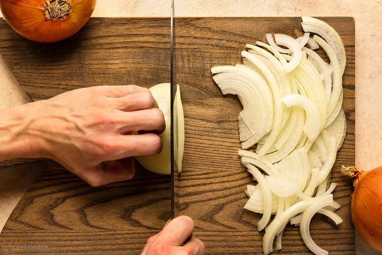 It might look unorthodox, but snug-fitting goggles are the surefire way to keep onion vapours at bay.