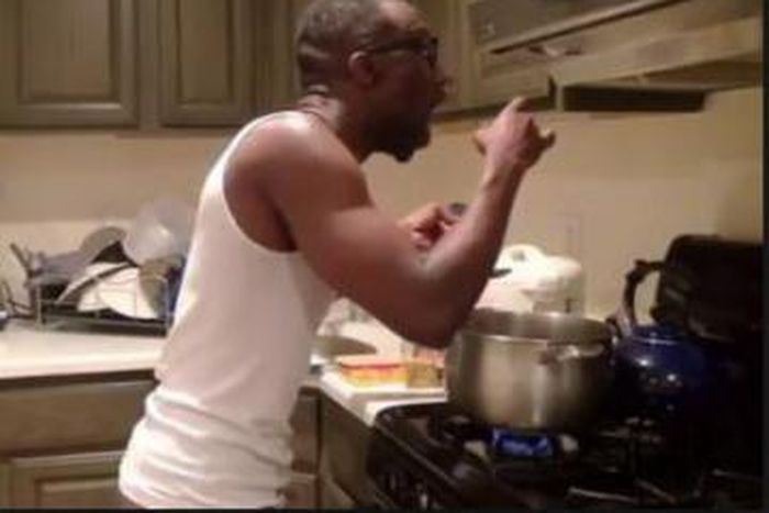 See what happens when this guy's African father caught him trying to steal meat from the pot.