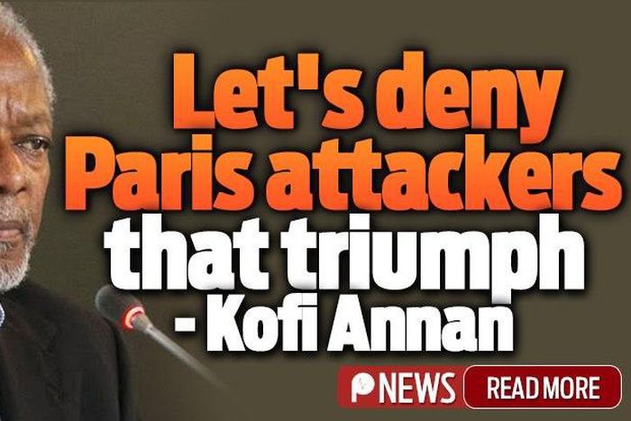 Former United Nations (UN) Secretary General, Kofi Annan has condemned the series of IS attacks on Paris last Friday with a call to citizens of the world to aim at denying the attackers the triumph they seek.