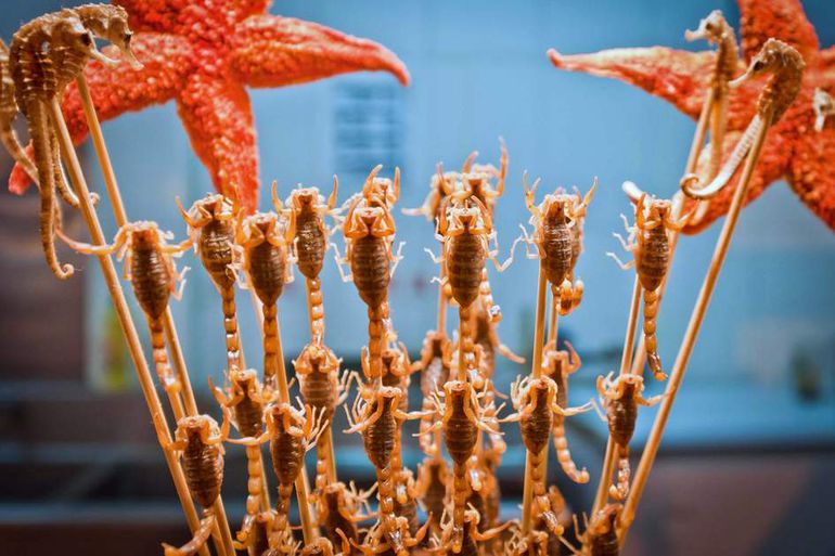 Cooking neutralises the venom, making them safe to eat. Once fried, scorpions are crunchy and nutty, and considered not just a novelty but a source of protein and medicinal value.