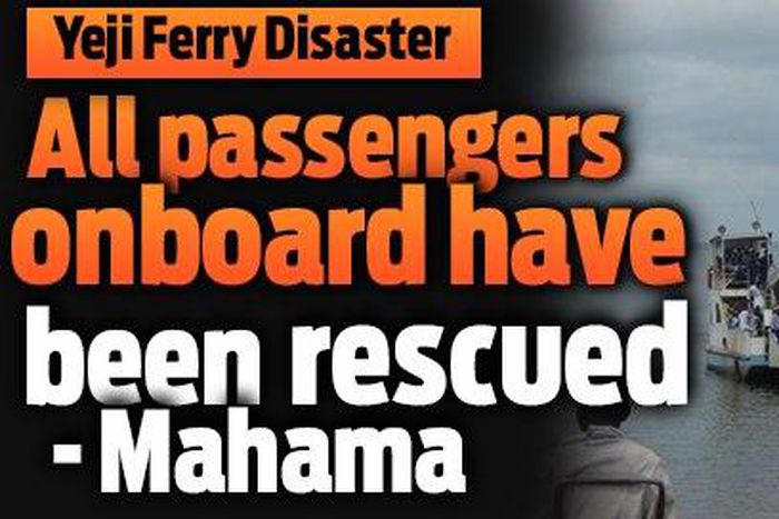 President John Mahama has revealed that all the passengers onboard the Yeji- Makonga ferry, which sank on Wednesday evening have been rescued by a naval detachment, with the cargo also being salvaged.