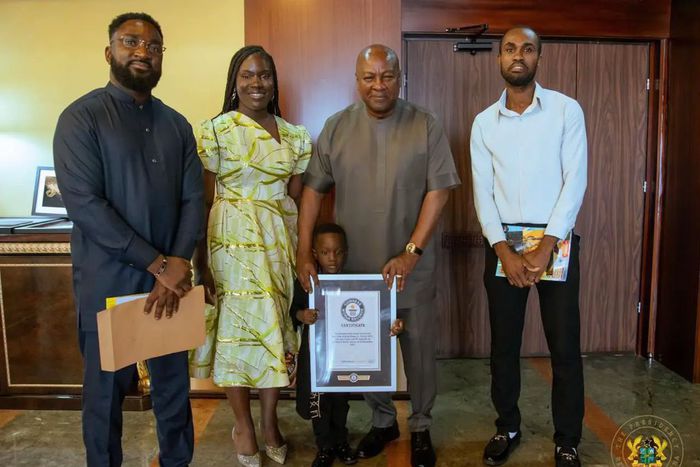 Young Ghanaian prodigy Ace-Liam Nana Sam Ankrah has paid a courtesy call on John Dramani Mahama at the Jubilee House, where he presented his Guinness World Records citation following his historic achievement.