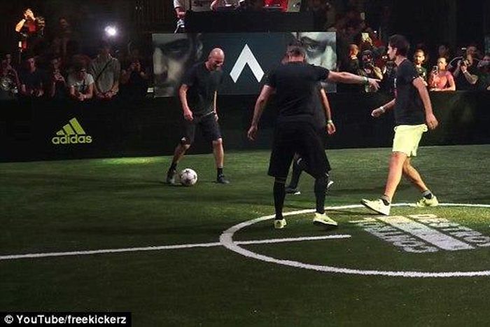 Zinedine Zidane and his son teamed up in a freestyle battle at The Adidas Base in Berlin to devastating effect